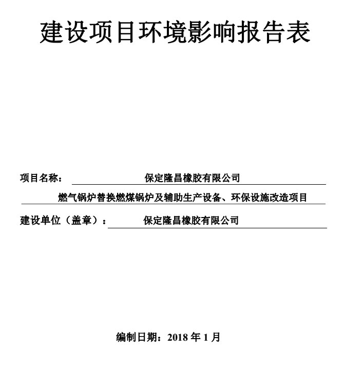 保定隆昌橡胶有限公司燃气锅炉替换燃煤锅炉及辅助生产设备、环保设施改造项目环境影响报告表 保定隆昌橡胶有限公司报告表(全本).pdf