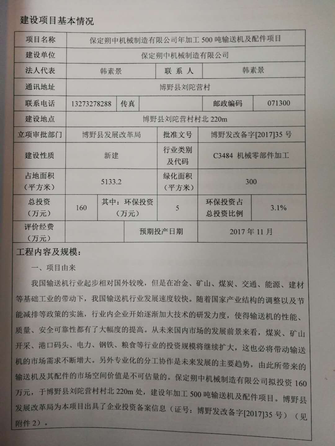保定朔中机械制造有限公司建设项目环境影响报告表