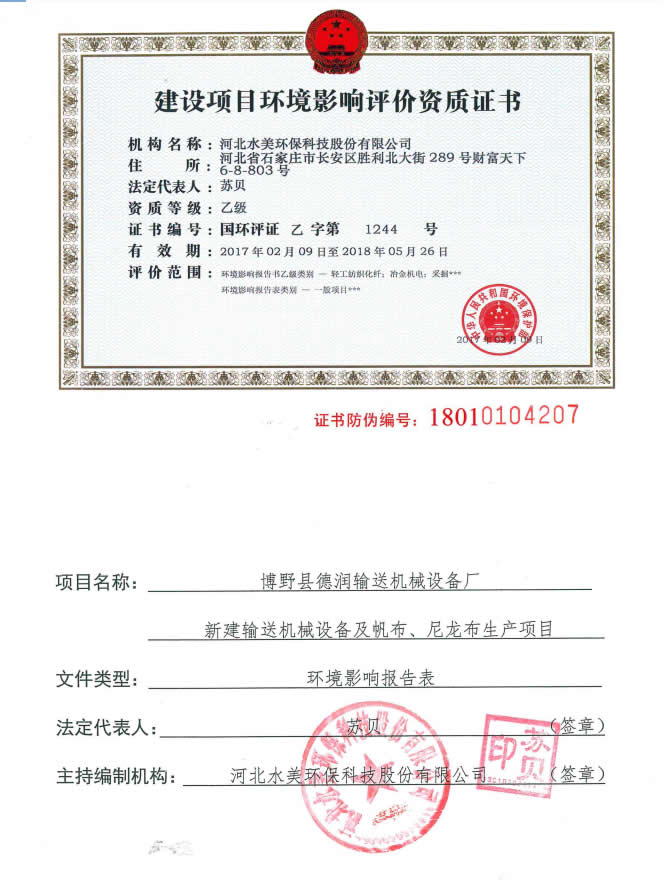 下一篇: 博野县德润输送机械设备厂建设项目环境影响报告表PDF