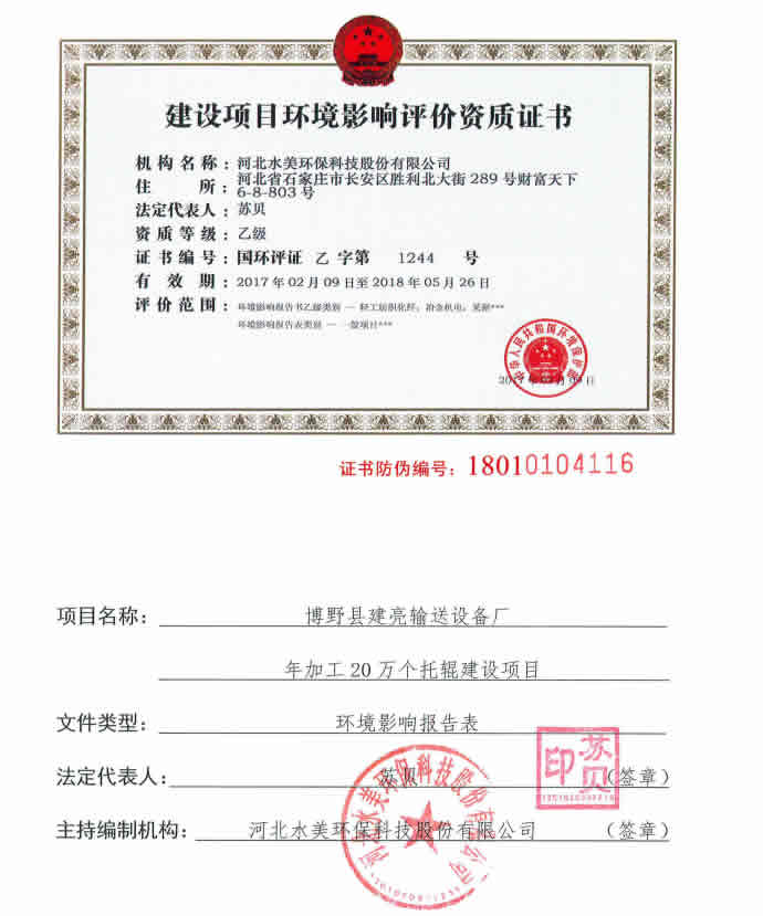 下一篇: 博野县建亮输送设备厂年加工20万个托辊建设项目环境影响报告表PDF